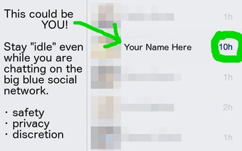 If you're tired of the big blue social network violating your privacy by displaying to all your contacts how many minutes have passed since you last used the site, then this extension is for you. By simply installing Social Network Chat Idle, you can regain control of your privacy. Now you can use social media when you want to, safely, privately, and discreetly. No longer do you have to worry about your nosy "friends".